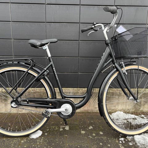 Den är en damcykel den är 28 tum den har 7 växlar däck både är byten och slag är också bytan och ny sadel den är som ny cykel är lite använda jag vill säga min cykel eftersom jag har köpt en el cykel