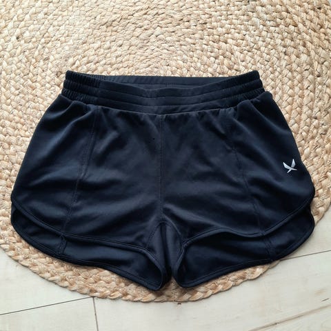 Mörkblå shorts med rosa text