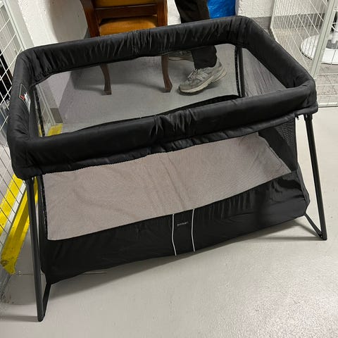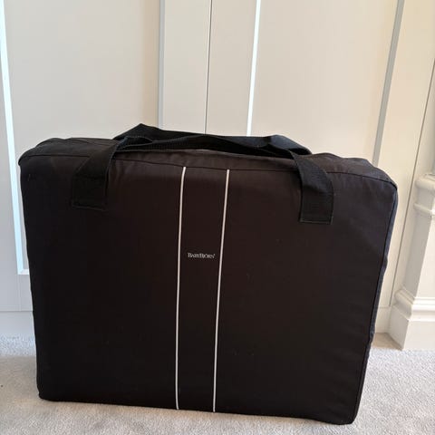Babybjörn resesäng för barn. Hopfällbar barnsäng som passar för resor och övernattningar. Sängen har tygsidor och stadiga ben samt levereras med tillhörande transportväska för enkel förvaring och transport.