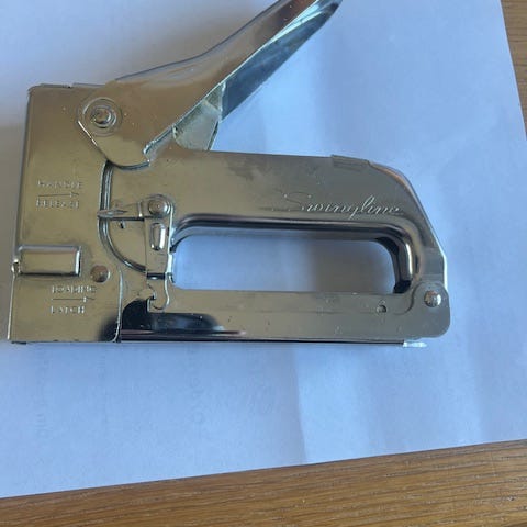 En halvautomatisk häftmaskin. Batteridriven och smidig. Helt ny.