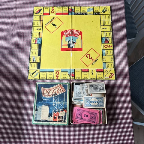 ◇ 6 monopoly-bankkort, ◇ 6 spelpjäser,