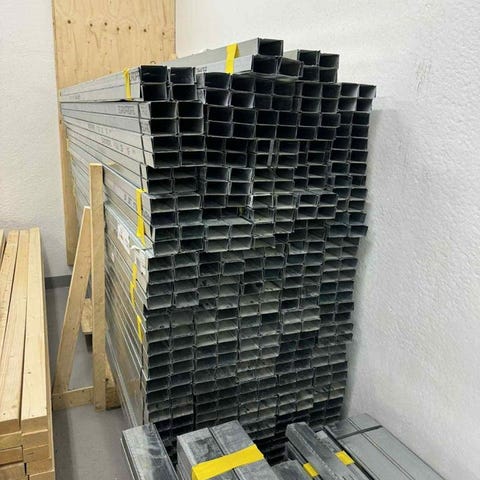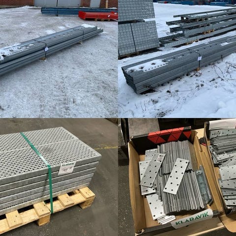 Parti med Galvaniserade stålreglar med olika längder. Reglarna är avsedda för bygg- och konstruktionsarbete, till exempel vägg- och regelstommar inomhus eller i skyddade utomhusmiljöer. Levereras i buntar, lämpliga för större projekt där flera reglar i samma dimension behövs. Materialet är varmförzinkat stål för ökat korrosionsskydd.
