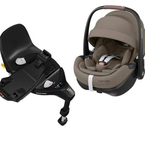 Adapter medföljer och har använts till barnvagn, vilket gör det enkelt att flytta babyskyddet mellan bil och vagn utan att väcka barnet.