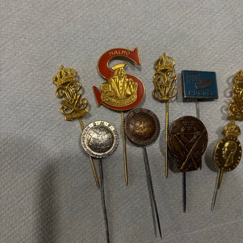 Smycke bok brosch i bokform metall vit blå guld