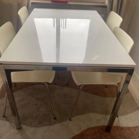 Matbod och vita stolar bra skick.