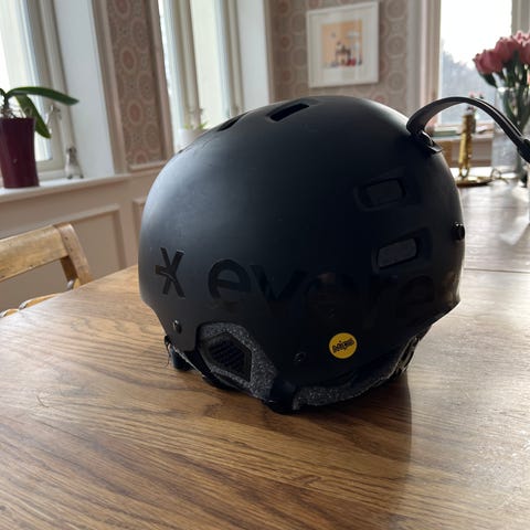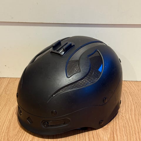 Smith Holt hjälm i storlek L (58–60 cm). Hjälmen är militärgrön med flera ventilationsöppningar och justerbart hakband med spänne. Synligt använd