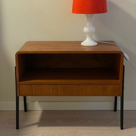 Välbevarat sängmöblemang, 2 sänggavlar, 2 nattygsbord, 2 sänglampor 60-tal. 2 nyligen kemtvättar sängöverkast.