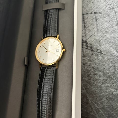 Klockan är helt oanvänd och nyskick. Den har legat i garderoben ett par år och batteriet behöver bytas.