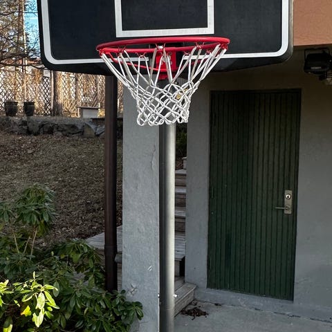 Kayoba basketkorg för väggmontering i svart färg. Korgen består av en bakplatta med monterad ring och nät. Passar för basketspel utomhus eller inomhus där väggfäste kan användas. Skruvar och övrigt monteringsmaterial kan behövas beroende på underlag och följer inte nödvändigtvis med produkten. Lämplig för användning med standard basketboll.