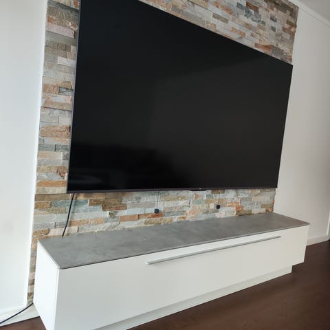 Bestå TV-bänk i mörkgrå färg. Nypris idag är 3 145 kr. 180x42x38 cm.