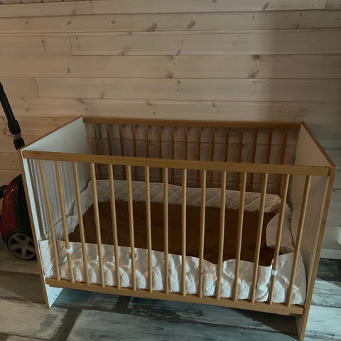 Skänker denna svarta Ikeasäng. Madrassen är använd i ett år. Spjälsängskyddet fås med om det önskas. Det sitter vyssjafötter på som kostar ca 200-250 kr nypris.