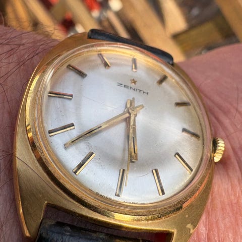Certina herrklocka guldton kvadratisk boett brun läderrem