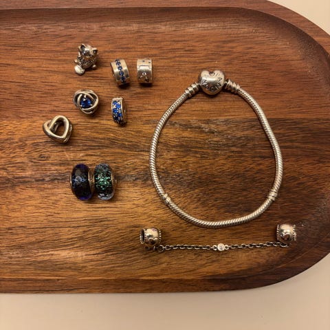 Armband Pandora i silver med 3 st berlocker