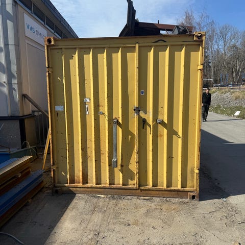 Fraktcontainer isolerad och ombyggd till förråd. Invändigt finns fasta hyllor längs väggarna för förvaring. Containern har dubbeldörrar med låsbom samt innerdörr mot förrådsdelen. El och belysning installerad. Gott skick, fullt fungerande, håller värmen bra. Lämplig som förråd eller extra förvaringsutrymme på tomt eller arbetsplats.