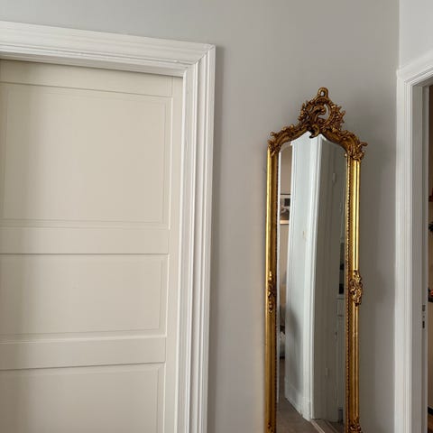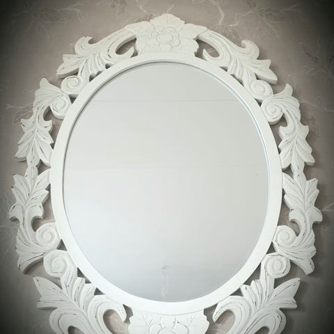 En äldre spegel som var guldfärgad. Men renoverade om den till vitt. Så himla vacker!