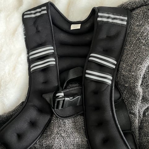 OMPU viktväst i svart färg. Västen har flera individuella viktblock framtill och baktill som kan tas ur eller justeras för att anpassa totalvikten.