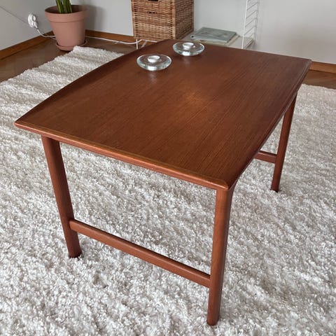 Fint retro soffbord i teak, perfekt till vardagsrummet.