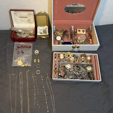 Samling smycken + armbandsur