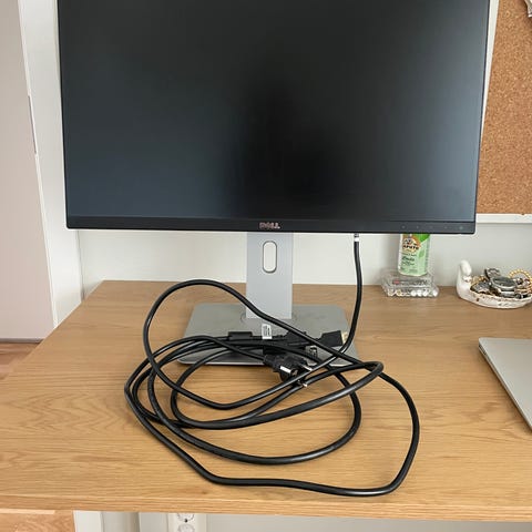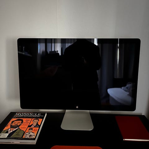 Apple bildskärm på 27 tum. Skärmen har en thunderbolt 2 kabel och det medföljer även en thunderbolt 2 till thunderbolt 3 adapter så att den går att använda med de senaste apple produkterna.