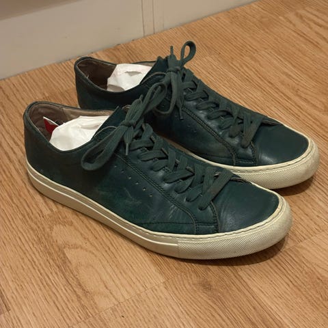 Kenzo sneakers i storlek 40. Skorna är blå med vit sula och vita skosnören. Modellen har låg profil med dragögla bak och tydlig Kenzo-logga på plösen och hälen. Passar som vardagsskor eller till mer avslappnade outfits.
