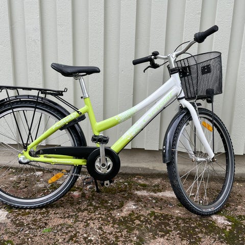 Har inte används på 2 år så lite små justeringar kan behövas, 9-växlad, broms fram och bak på styret(ingen fotbroms)