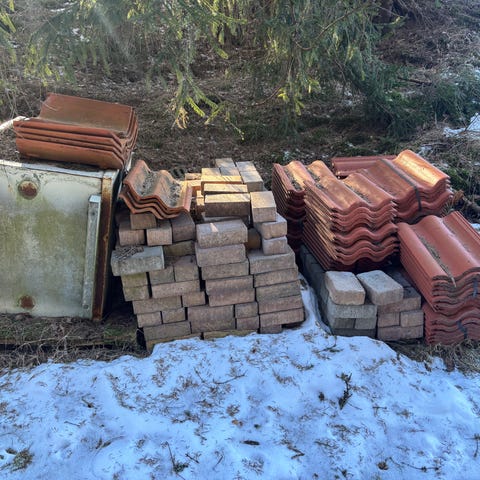 Blandad gammal tegelsten, ca 400 st, kanske något fler men säkert några som är halva också.