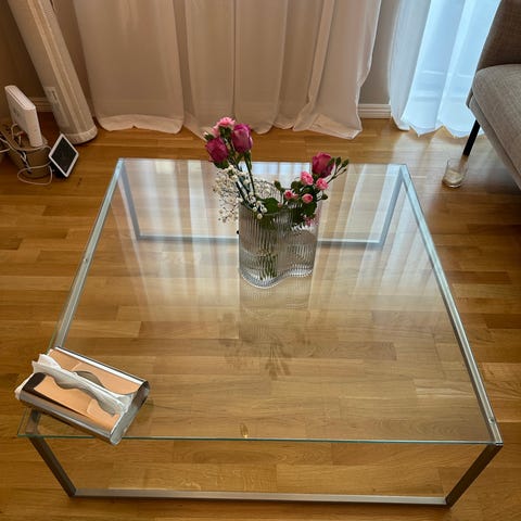Säljer mitt soffbord som är sparsamt använt och överlag i mycket fint skick. Det finns några repor på glasskivan, men inget som påverkar funktionen eller helhetsintrycket. I övrigt är bordet fräscht och väl omhändertaget.