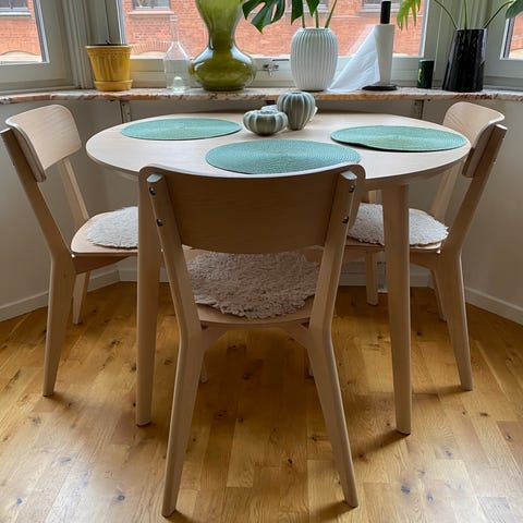 Fint ljust trä, benen till bordet kan tas av!