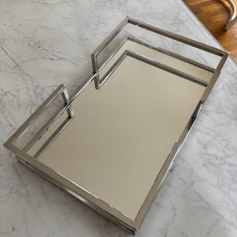 Hemtex bricka i vitt. Rund bricka med upphöjda fötter undertill. Passar som bas för dekorationer i hemmet.