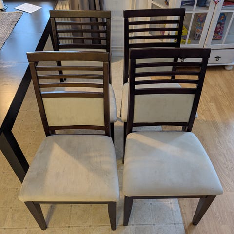 De är i använt skick och det finns vissa fläckar som mest troligt går att tvätta bort. Jag har inte testat det.