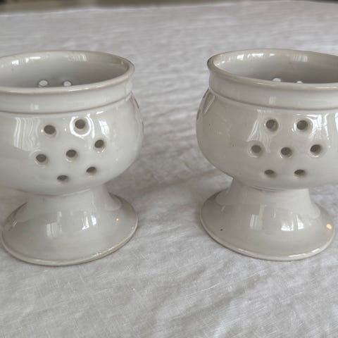 Höganäs ljuslyktor i vitt porslin med utskurna hjärtan på sidorna. Ljuslyktorna är runda med något utvikt kant upptill och är avsedda för värmeljus. Undersidan är märkt med Höganäs -stämpel. Passar som enkel belysning eller dekoration i hemmet.