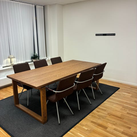 Köksbord med sex st skinnstolar .Bordet är i rejäl ek.