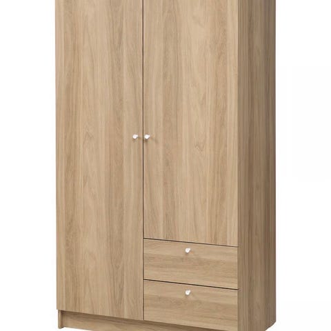 Säljer en äldre IKEA PAX garderob med 2 partier som sitter ihopp: det smallare har 4 trådbackar och 3 hyllplan, det större har klädstång och 2 stora trådbackar.