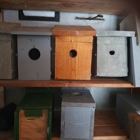 Fågelholk gjort av återvunnet material.
