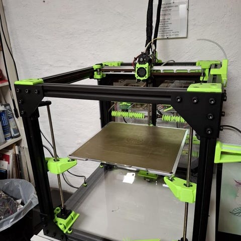 Fin V-Minion 3d-printer som fungerar klockrent. Har gått ~600 timmar. Kör naturligtvis Klipper (Rat-OS). Byggd uteslutande med delar i PC-CF (förutom några få detaljer, exempelvis är den dekorativa delen som visar att detta är #3 Special Edition original i PETG). Helt ny textured PEI-sheet.