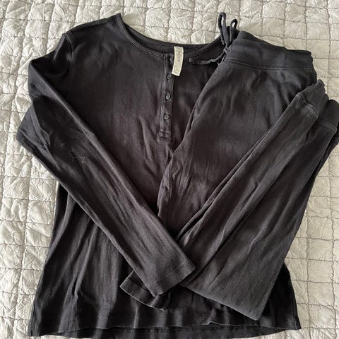 Mjukisset för dam från OYSHO i mörkgrå färg (mörkare än på bilderna) - Består av topp i storlek XS och byxa i storlek S - Mycket mjukt, följsamt och skönt material – perfekt för hemmamys - I mycket fint skick - Endast frakt - Reducerad frakt vid köp av flera varor.