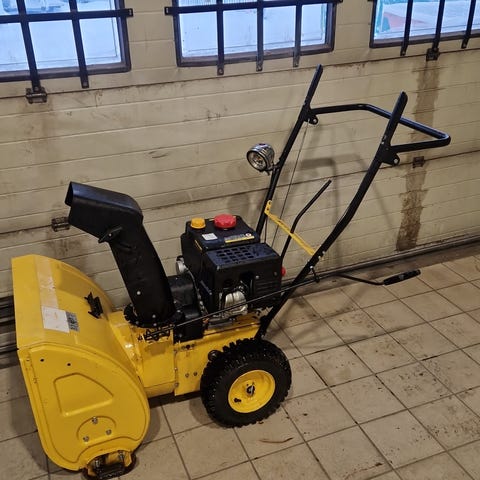 Cub Cadet 526 HD SWE snöslunga med bensinmotor på 7,4 kW vid 3600 varv/min. Modellen är en trestegsslunga med grovt mönstrade däck för bättre grepp på snö och is. Maskinen har elstart och manöverreglage placerade vid handtagen. Utkastartornet är justerbart och snöintaget är i metall med skruv/impeller i fronten. Tillverkningsdatum 09/2018.