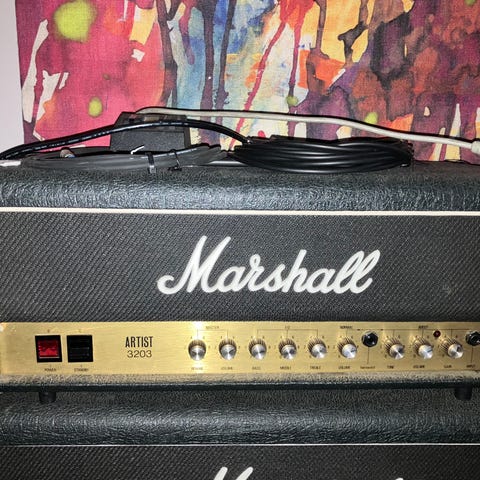 Marshall Master Lead Combo gitarrförstärkare i svart utförande. Modellen är ett combo med inbyggd högtalare och kontroller på frontpanelen för bland annat volym, diskant, mellanregister och bas. Förstärkaren är avsedd för elgitarr och har klassisk Marshall-design med svart vinylklädsel, gallerfront och guldfärgad panel. Passar för övning, repetition och mindre spelningar där en kompakt gitarrförstärkare önskas.