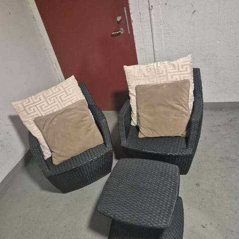 Två bruna Mio fåtöljer i bra skick förutom delvis avskaft konstskinn. Annars stabila i bra skick. Bortskänkes mot avhämtning.