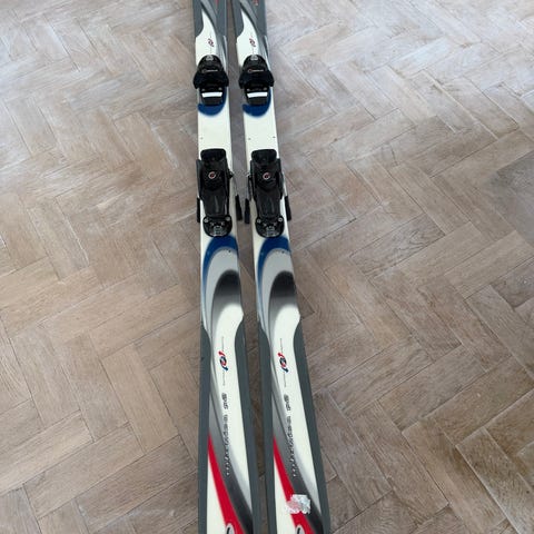Skidor lämpliga för alpin åkning men även för mer lekfull åkning. Bindningar monterade på skidorna. Bruksskick med normalt slitage, därav priset.