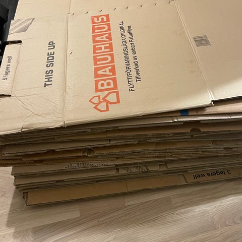 Flyttlådor: totalt 20 stycken.