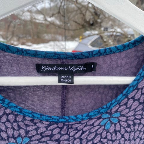 Tunikan/Klänningen har ett mönster med små blommor och är designad för vardagligt bruk.