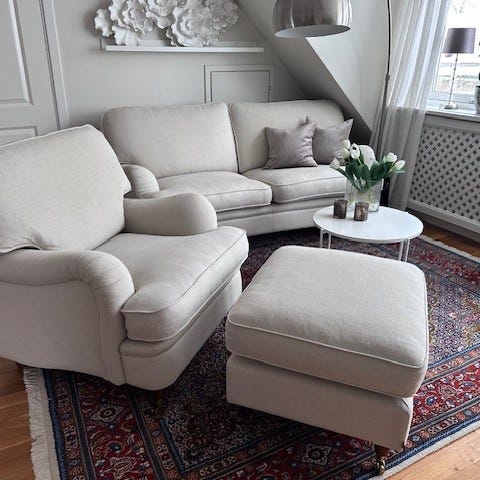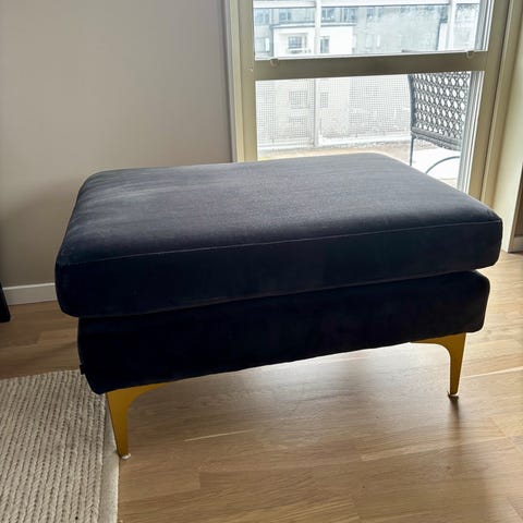 Fin barn soffa i blå sammet med två puffar till. Bra skicka inga skador eller fläckar.