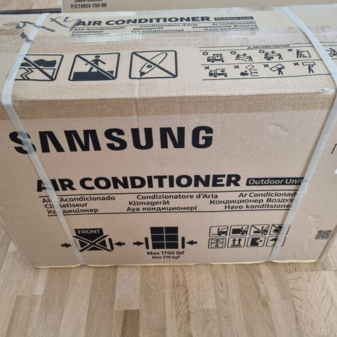 Oanvänt: Panasonic luftvärmepump/kyla/AC med tak-kassett – Komplett paket