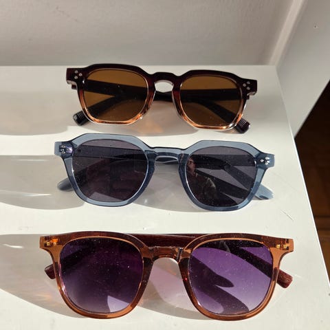 Runda clic-on solglasögon. Glasögonen "hängs på" och har mörka, runda linser och tunn metallbåge. Medföljer gör ett fodral i textil och konstläder i två färger. Passar som solskydd vid vardagsanvändning och utomhusaktiviteter. Diameter på varje glas 50mm. Passar glasögon som är 11-12 cm från kant till kant.