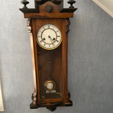 Denna produkt är en golvklocka, en traditionell möbel och inredningsdetalj med en pendel och vikter i en hög träram