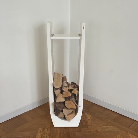 Den är gjord i aluminium så den väger lite men känns ändå stabil. Handtaget i trä ligger bra i handen och gör den lätt att bära, även med tyngre ved. Formen gör också att veden ligger kvar utan att ramla ut.