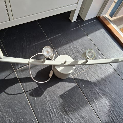 Lampan är hel, men sladden som kopplas till strömmen saknas.