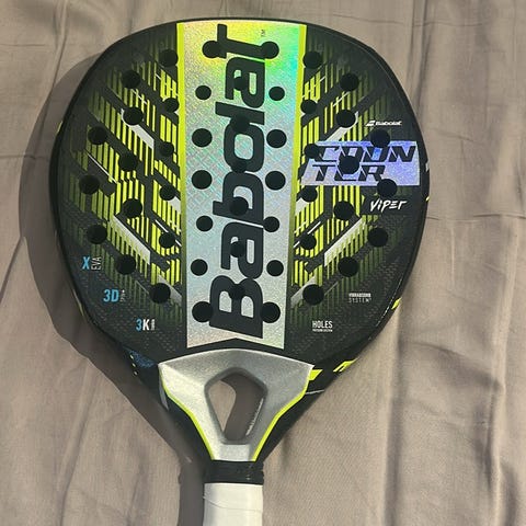 Dunlop Omega padelracket med matchande padelbollar. Setet på bilden visar två padelracketar där ett är Dunlop Omega i svart och neongrönt utförande. Medföljer gör även flera rör med padelbollar samt en lös padelboll. Utrustningen lämpar sig för padelspel och kan användas både för träning och matchspel. Racketet har handledsrem för ökad säkerhet vid spel.