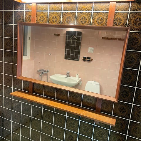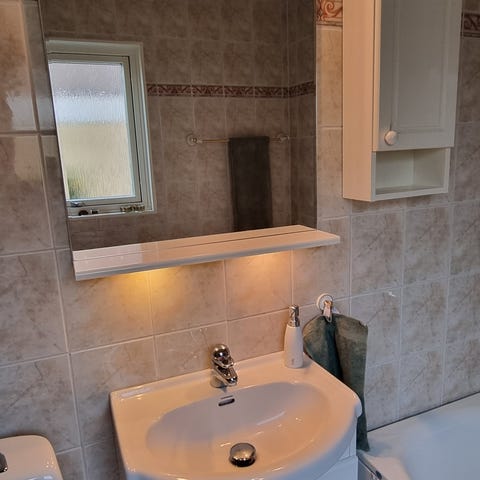 Fint skick men några små skavanker på hyllan till spegeln.